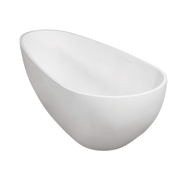 Elevate your home's contemporary decorum, while you effortlessly recline in the cozy embrace of a Kingston Brass freestanding bathtub. Highly acclaimed for its clean and contemporary yet minimalist shape, this tub will be made the focal point in many bathrooms. The Aqua Eden Arcticstone 72-inch egg shaped solid surface freestanding tub with drain will wholly beautify your home for years to come thanks to its durable and scratch resistant solid surface white stone construction. This bathtub's exterior is finished in an elegant matte white to bring high design into your space, and its interior and inner rim are polished to a glossy finish to make cleaning and care easier.