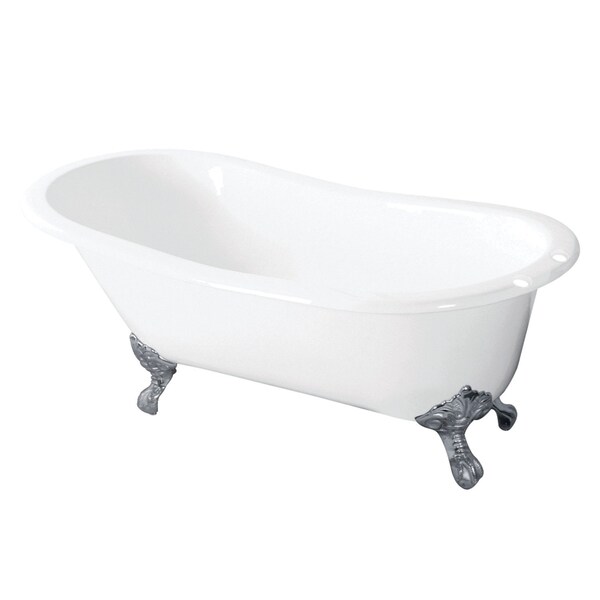 Surround yourself with the perfumed aroma of your favorite candle, grab your favorite piece of literature, and soak all of the stresses of the day away with the all-encompassing embrace of one of Kingston Brass' finest products, the clawfoot tub. Since the late 19th century, the claw foot tub has stood prominent among bathroom fixtures for its outstanding grandeur. The Aqua Eden 54-inch cast iron slipper clawfoot tub with 7-inch faucet drillings will wholly beautify your home for years to come thanks to its durable and heavy cast iron construction. Elegantly crafted clawfoot tub feet are included to further elevate your home's traditional eminence.