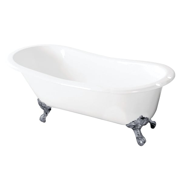 Clawfoot Bathtubs, 56.88 L, 30.5 W, White/Polished Chrome, Cast Iron