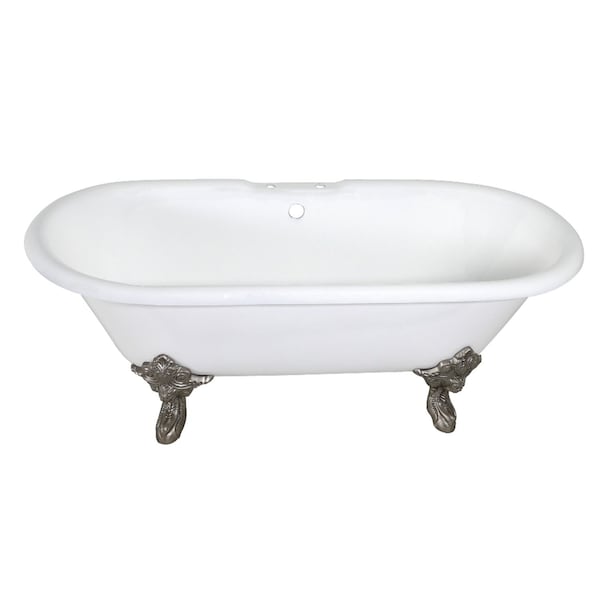 Clawfoot Bathtubs, 72 L, 31.88 W, White/Brushed Nickel, Cast Iron