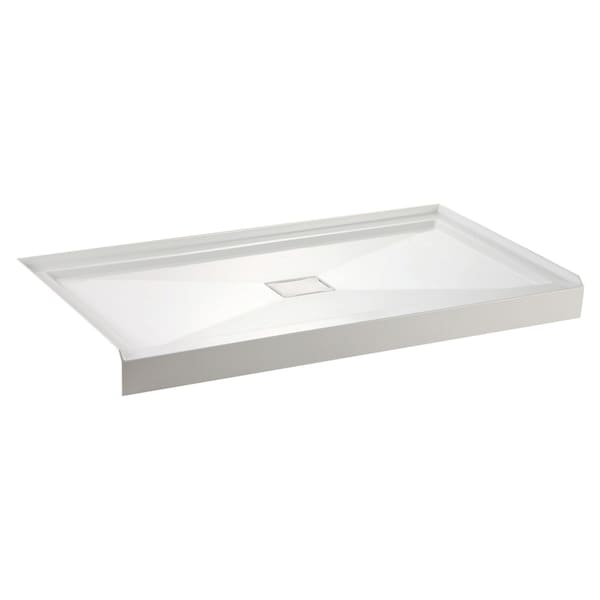 Acrylic construction with fiberglass and resin reinforcement, Single threshold for three-wall installation, Center drain placement, Overall dimensions: (L)60" x (W)32" x (H)4-15/16", Drain not included