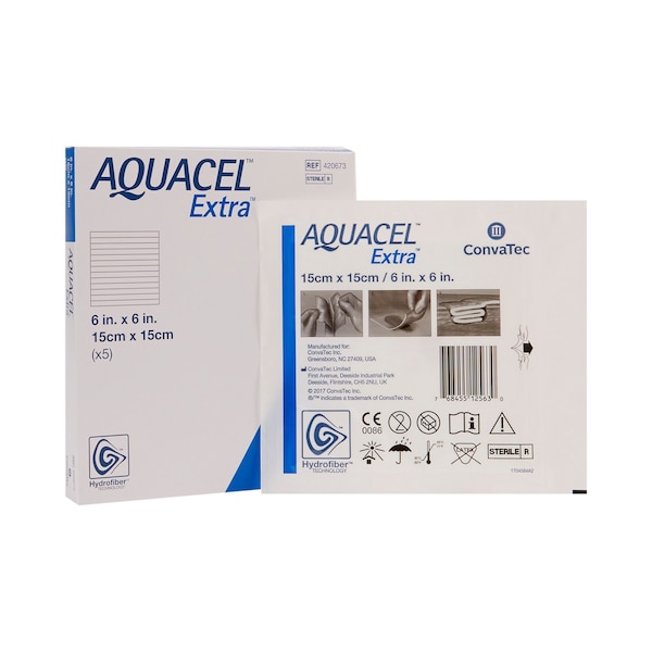 This hydrofiber wound dressing is nine times stronger and 39% more absorbent than a standard Aquacel dressing Aquacel 6 x 6-inch wound dressing is made with two-dimensional strengthening fibers for high strength and durability It gels on contact with fluid for high absorbency It creates a moist environment that helps skin heal faster Use this Aquacel Extra hydrofiber dressing on moderate to highly exuding wounds