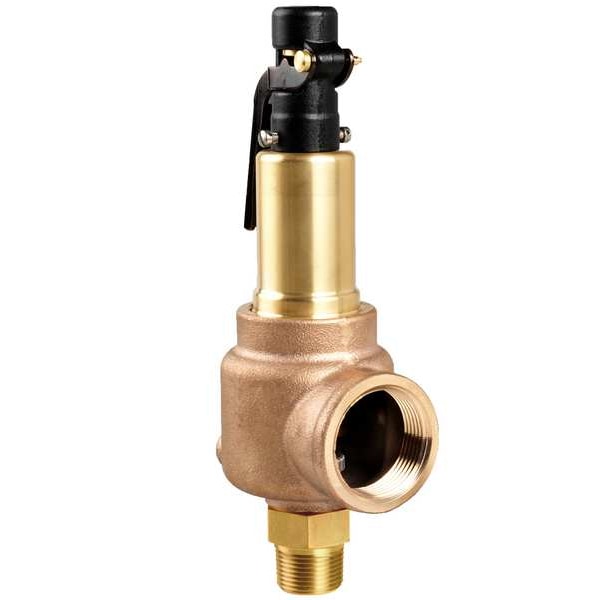 Safety Relief Valve, Body Material Bronze, Inlet Type MNPT, Outlet Type FNPT, Inlet Size 2 in, Outlet Size 2 in, Factory Set Pressure 200 psi, 0 BtuH BtuH, Disc Material Stainless Steel, Overall Height 10 1/4 in, Overall Length 10 1/4 in, Spring Material Stainless Steel, Temp. Range -320 Degrees to 406 Degrees F, Test Lever Test Lever Included, Standards ASME Code UV, CE, CRN, NB