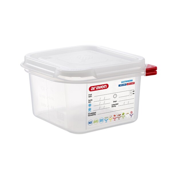 AIRTIGHT CONTAINER POLYPROPYLENE GN1/6, 1.9qt TRANSPARENT, 6 7/8" X 6 3/8" X 4" (Discontinued)