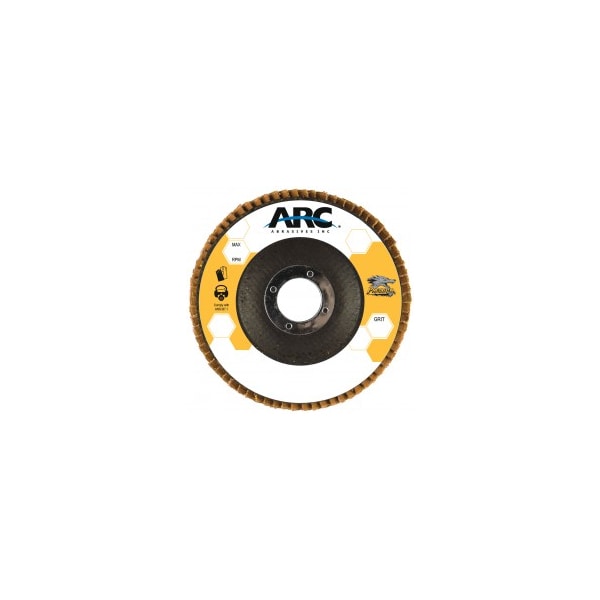 Flap Disc, Abrasive Type Coated, Abrasive Material Ceramic, Grade 60, Backing Plate Material Fiberglass, Connector Size 7/8 in, Connector Type Unthreaded Hole, Density Rating Standard, Flap Disc Type Type 27, Overall Diameter 7 in, Series Predator FF, Backing Material Polyester, Backing Weight Y, Coating Coverage Closed, Grit 60, Maximum Operating Speed 8,600 RPM, Color Yellow, Resistance Properties Heat