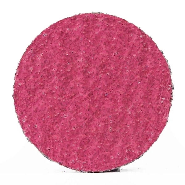 Quick-Change Sanding Disc, Abrasive Type Coated, Abrasive Material Ceramic, Backing Material Polyester, Backing Weight Y, Coating Coverage Closed, Grit 50, Overall Diameter 2 in, Quick Change System TR, Series Ambush, Maximum Operating Speed 20,000 RPM, Resistance Properties Heat, Color Pink
