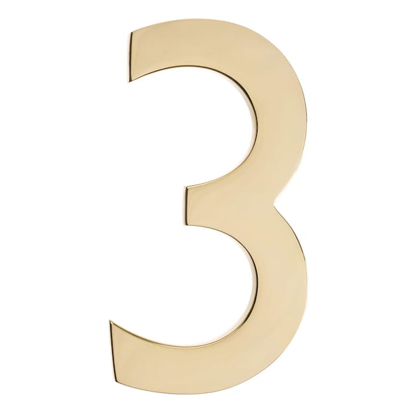 Brass 5 inch Floating House Number Polished Brass 3
