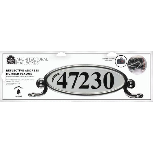 Reflective address number kit for all mailboxes and posts is highly visible making identifying addresses quick and easy. Holds 5 numbers horizontally or 4 numbers vertically. Includes all hardware and self-adhesive 2 In. tall numbers. Reflective appearance is ideal for emergency response vehicles to find address locations.