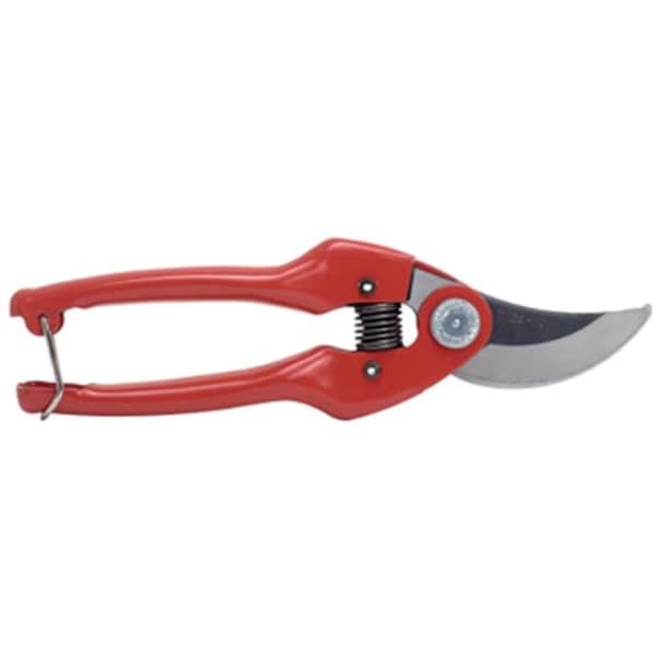 Traditional design and robust pruner for general purpose gardening. The sharp upward curve of the blade causes the leading edge to slice as it cuts into the wood. Locking mechanism with wire clasp at the end of handle. Orange steel handle and bypass blades. For gardeners with smaller hands. Ensures a clean cut in live wood.