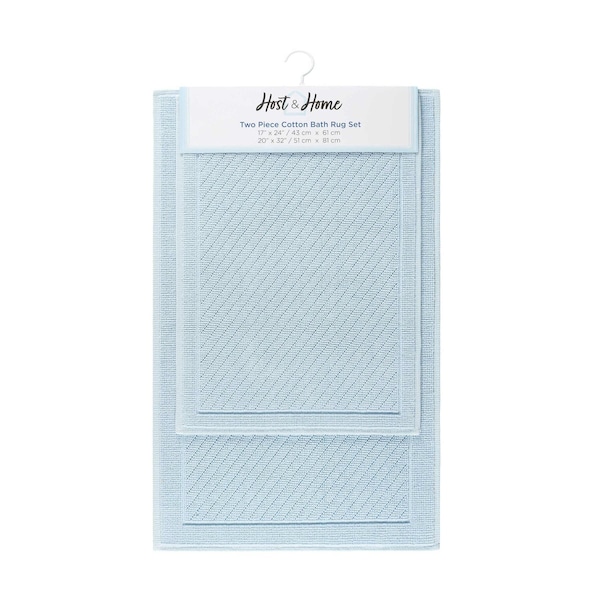 Introducing the Host & Home Woven Cotton Bath Rug Collection. This sturdy bathroom rug was designed with two woven patterns separated by a simple outline that creates a unique new style. Available in four sizes including a runner, and a 2-piece multi-size set. Inspired by clean, serene earth tones to match any bath or spa decor, this contemporary bath rug collection offers stylish, absorbent bath rugs that will appeal to family, friends, and guests alike. A slip-resistant backing ensures improved safety over inferior bath rugs. Elevate your home style and comfort level with our woven cotton bath rugs and mats. Available in five sophisticated colors, this modern rug collection has a tightly woven construction that ensures a long lifespan. The spa-worthy color palette includes bright white, oyster mushroom light grey, silt green eucalyptus, almond milk beige, and baby blue. A fresh palette combined with a unique multi-directional woven texture creates interest in this inviting bath decor textile. This contemporary bath mat collection is perfect for any bath or spa space that needs a fresh reboot! With multiple sizes and five colors to choose from, you can freshen up each bathroom in the house, the beach house, the college dorms, and the AIRBNB! Rotate bath rugs between houses for a new look! Our durable bath rug collection is the perfect blend of style and functionality. Crafted expertly from robust cotton on the technologically advanced Van de Wiele carpet weaving loom, these rugs are not only soft and absorbent but also feature a stylish two-weave texture. To ensure longevity and safety, they are backed with a rubber-like non-skid layer. With high-quality construction, these rugs are designed to stand the test of time, promising years of reliable performance while enhancing your bathroom's aesthetic appeal. Our Woven Cotton Bath Rug is an ideal accessory for rental properties, Airbnbs, beach or ski homes, and primary homes! Whether you are buying for your family or for a rental property, any of these lovely woven cotton bath rugs will appeal to your family, friends, and guests!