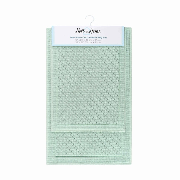 Introducing the Host & Home Woven Cotton Bath Rug Collection. This sturdy bathroom rug was designed with two woven patterns separated by a simple outline that creates a unique new style. Available in four sizes including a runner, and a 2-piece multi-size set. Inspired by clean, serene earth tones to match any bath or spa decor, this contemporary bath rug collection offers stylish, absorbent bath rugs that will appeal to family, friends, and guests alike. A slip-resistant backing ensures improved safety over inferior bath rugs. Elevate your home style and comfort level with our woven cotton bath rugs and mats. Available in five sophisticated colors, this modern rug collection has a tightly woven construction that ensures a long lifespan. The spa-worthy color palette includes bright white, oyster mushroom light grey, silt green eucalyptus, almond milk beige, and baby blue. A fresh palette combined with a unique multi-directional woven texture creates interest in this inviting bath decor textile. This contemporary bath mat collection is perfect for any bath or spa space that needs a fresh reboot! With multiple sizes and five colors to choose from, you can freshen up each bathroom in the house, the beach house, the college dorms, and the AIRBNB! Rotate bath rugs between houses for a new look! Our durable bath rug collection is the perfect blend of style and functionality. Crafted expertly from robust cotton on the technologically advanced Van de Wiele carpet weaving loom, these rugs are not only soft and absorbent but also feature a stylish two-weave texture. To ensure longevity and safety, they are backed with a rubber-like non-skid layer. With high-quality construction, these rugs are designed to stand the test of time, promising years of reliable performance while enhancing your bathroom's aesthetic appeal. Our Woven Cotton Bath Rug is an ideal accessory for rental properties, Airbnbs, beach or ski homes, and primary homes! Whether you are buying for your family or for a rental property, any of these lovely woven cotton bath rugs will appeal to your family, friends, and guests!