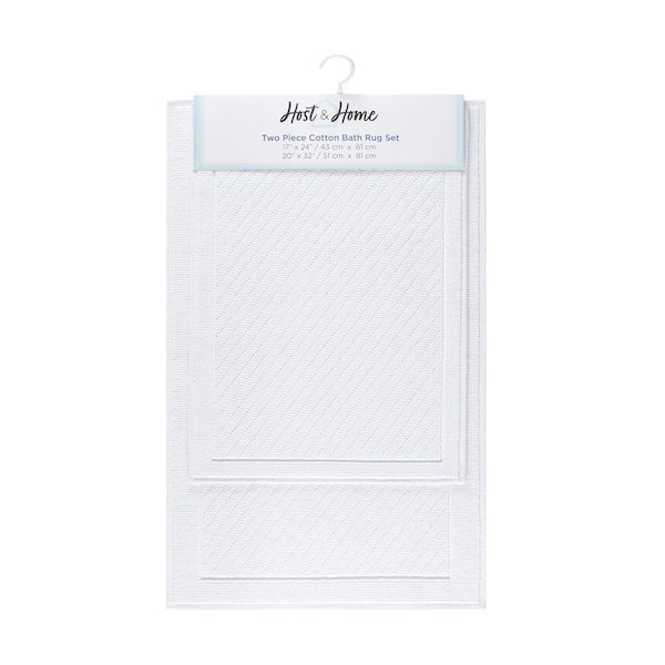 Introducing the Host & Home Woven Cotton Bath Rug Collection. This sturdy bathroom rug was designed with two woven patterns separated by a simple outline that creates a unique new style. Available in four sizes including a runner, and a 2-piece multi-size set. Inspired by clean, serene earth tones to match any bath or spa decor, this contemporary bath rug collection offers stylish, absorbent bath rugs that will appeal to family, friends, and guests alike. A slip-resistant backing ensures improved safety over inferior bath rugs. Elevate your home style and comfort level with our woven cotton bath rugs and mats. Available in five sophisticated colors, this modern rug collection has a tightly woven construction that ensures a long lifespan. The spa-worthy color palette includes bright white, oyster mushroom light grey, silt green eucalyptus, almond milk beige, and baby blue. A fresh palette combined with a unique multi-directional woven texture creates interest in this inviting bath decor textile. This contemporary bath mat collection is perfect for any bath or spa space that needs a fresh reboot! With multiple sizes and five colors to choose from, you can freshen up each bathroom in the house, the beach house, the college dorms, and the AIRBNB! Rotate bath rugs between houses for a new look! Our durable bath rug collection is the perfect blend of style and functionality. Crafted expertly from robust cotton on the technologically advanced Van de Wiele carpet weaving loom, these rugs are not only soft and absorbent but also feature a stylish two-weave texture. To ensure longevity and safety, they are backed with a rubber-like non-skid layer. With high-quality construction, these rugs are designed to stand the test of time, promising years of reliable performance while enhancing your bathroom's aesthetic appeal. Our Woven Cotton Bath Rug is an ideal accessory for rental properties, Airbnbs, beach or ski homes, and primary homes! Whether you are buying for your family or for a rental property, any of these lovely woven cotton bath rugs will appeal to your family, friends, and guests!