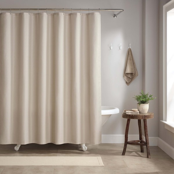 This stunning premium quality shower curtain set has a lovely solid color jacquard and is designed with an intricate woven stripe and grid pattern with a subtle raindrop stitch overlay, creating instant appeal. This premium quality shower curtain set comes complete with a weighted hem, rust-resistant rolling rings, and metal grommets. The 100% polyester fabric feels soft and sleek, repelling water, stains, and oil. Choose from four spa colors inspired by today’s classic trends that will elevate your bath decor to a new level of elegance. Elevate your bathroom decor with this distinctive shower curtain featuring an intricate raindrop stitch design gracefully layered over two woven stripe patterns. This elegant combination of textures is visually captivating, making this curtain a stylish and eye-catching addition to your bath space. Whether you're upgrading your home, vacation homes, rental properties, collegiate dorms, or even AirBNBs, our raindrop jacquard shower curtain set is a seamless fit. The understated elegance of the raindrop stripe pattern ensures that it won't compete with large prints or textures, seamlessly blending into any decor style. Its timeless design and versatility make it an excellent addition to any bathroom. Hang this curtain set wherever you desire, and you'll surely be pleased with the lovely results it brings to your space. Transform your bathroom instantly with our raindrop stripe shower curtain set. You'll love the durability of our 210 GSM polyester jacquard fabric. Its tight weave, sturdy hem, and metal grommets with heavy-duty rolling rings prevent tearing and stretching. Our proprietary "Three Proof" treatment repels water, stains, and oils, keeping it fresh longer. Enjoy a soft, sleek feel when you touch this shower curtain, thanks to the fine polyester threads. Invest in quality, longevity, and style with our shower curtain set.
