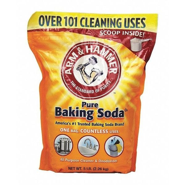 All Purpose Cleaner and Deodorizer, Odor Eliminators, Fragrance Unscented, Container Type Bag, Container Size 5 lb, Recommended Dilution Ready to Use, Air Freshener Form Powder, White, Hard Nonporous Surfaces, None, Ready to Use/Concentrated Ready to Use, Net Weight 5 lb, NSF Rating Not Rated, Product Series Arm and Hammer, Standards Kosher; FDA Approved, Package Quantity 4