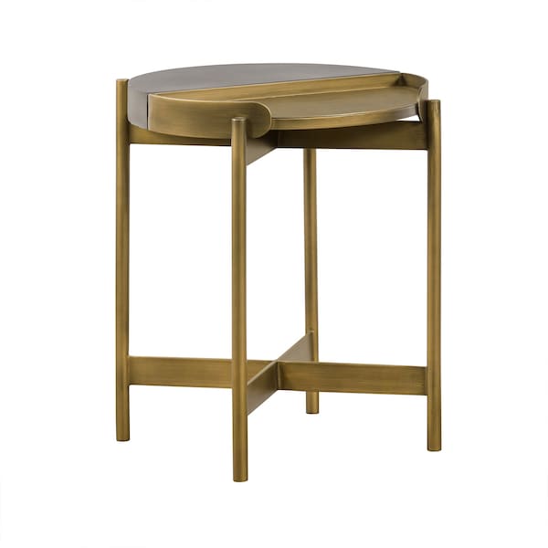 Master the art of form and function with the Armen Living Dua End Table. This round end table featured an antique gold finish with concrete accent top to add a touch of glamour to any home. The x-shaped based add structure and sturdiness to ensure durability of the product. This modern and chic end table will elevate any decor in your home no matter where you place it. Included: 1 console table Table Concrete, Antique Brass Metal Material: Antique Brass metal Assembly Required: Yes Features: This eye-catching piece is a decorative accent to your home while being practical for use in all rooms Features: Two tone finish with concrete accent with antique brass metal for glamorous look Features: Concrete accent top is spacious, and the X metal base provide sturdy foundation Ships In: 1 Boxes Table Dimensions: 15.7 W X 15.7 D X 19.7 H Table Top Thickness: 2 in. NOTE: Color and saturation may vary due to lighting and monitor/phone screen settings