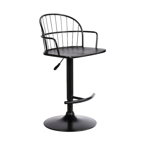 Give your kitchen some bar seating that's as stylish as it is practical with this adjustable barstool. This stool features a metal tube construction with a wooden seat for a modern yet rustic look. The integrated armrests and footrest make this stool a comfortable place to rest or eat breakfast. The Edward stool is available in your choice of a black brushed or walnut brushed seat and adjusts between 34.5 in. to 42.5 in. . Included: 1 BarstoolSeat Height: AdjustableColor: Black or WalnutMaterial: Wood and MetalAssembly Required: YesShips In: 1 BoxProduct Dimensions: NOTE: Color and saturation may vary due to lighting and monitor/phone screen settings