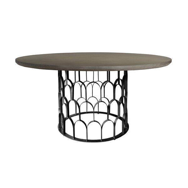 The Armen Living is 55 inches in diameter and easily seats up to 4 people. This table features a beautiful metal base with a faux concrete top allowing it to easily fit in to any current design theme in your home. The Gatsby Dining Table is also available with an oak top. Included: 1 Dining TableSeats Up To: 4Top Material: Faux ConcreteBase Material: MetalColor: GrayAssembly Required: YesShips In: 2 BoxesProduct Dimensions: 55 in. W x 55 in. D x 30 in. HNOTE: Color and saturation may vary due to lighting and monitor/phone screen settings