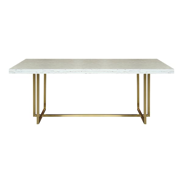 Harmony Contemporary Dining Table in Brushed Gold Finish and Ash Veneer Top