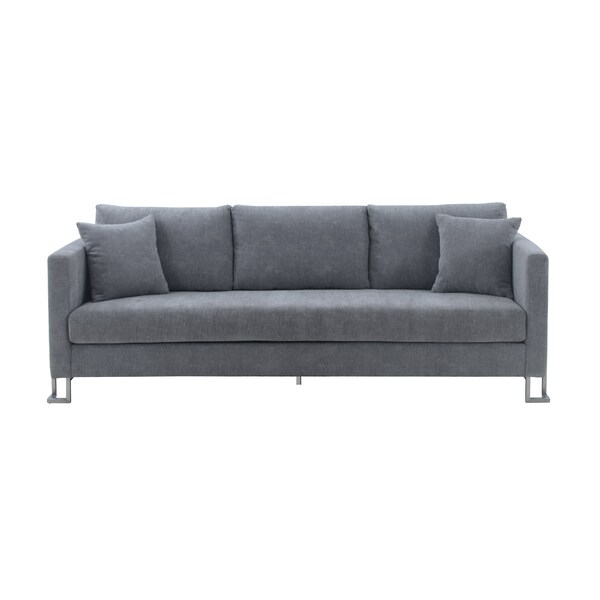 Heritage Gray Fabric Upholstered Sofa with Brushed Stainless Steel Legs