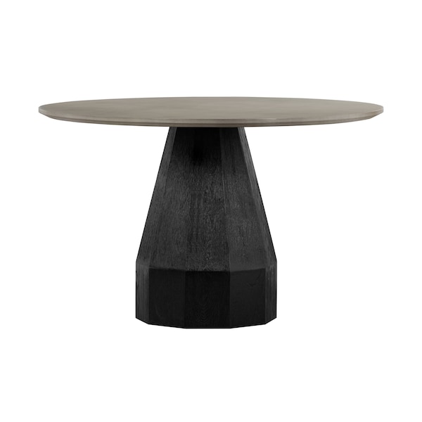 The is a uniquely designed, one-of-a-kind pieces from the creators at Armen Living. The alluring look of the tapered black brushed oak column is what makes this piece so original. The biggest advantage of a pedestal table is the seating gained because there are no legs on the corners. The over 1 in. thick concrete tabletop is strong and wide. The symmetry involved in this piece is an eye-catching feature that will never fail to garner attention. The benefits of concrete furniture go far beyond their strength. There is nothing like the look of elegant, concrete furniture and tables to complete an indoor or outdoor landscape. Product Dimensions: 47 x 47 x 30.