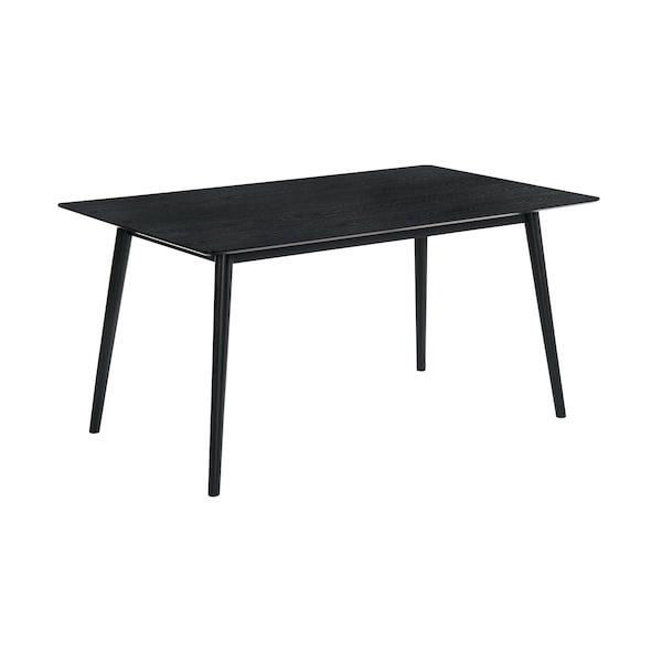The Westmont 59" Rectangular Dining Table in Black Wood features a clean and minimalist silhouette that provides ample space for friends and family to gather. Four tapered and splayed legs support the rectangular tabletop to create a mid-century-inspired aesthetic. Rectangular dining tables are the go-to table shape for any dining area. It's practical, fits easily in a dining room, and most importantly, it looks great. Easily seating up to 6 guests, the Westmont is the perfect addition to any eat in kitchen or dining room! Dinner parties and family breakfasts serve up inviting ambiance with this retro-influenced yet contemporary dining table. The Westmont rectangular dining table is 59" wide and is available in your choice of a black or walnut wood finish.