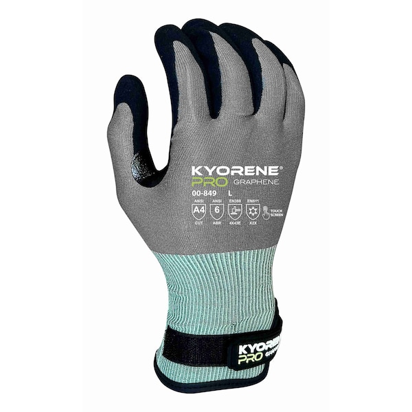 18g Gray Kyorene Pro Graphene A4 Liner With 7g Poly-Acrylic Lining & Hook and Loop Closure with Black HCT MicroFoam Nitrile Palm Coating, M, 12PK