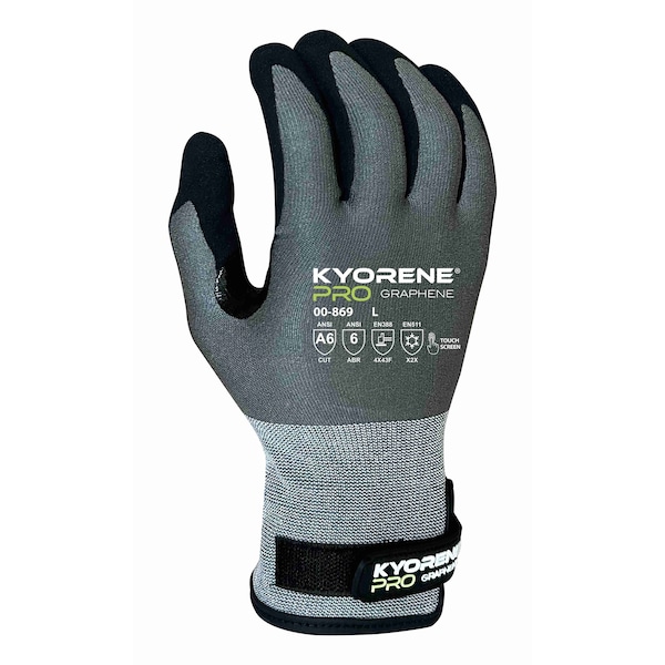 18g Gray Kyorene Pro Graphene A6 Liner With 7g Poly-Acrylic Lining & Hook and Loop Closure with Black HCT MicroFoam Nitrile Palm Coating, M, 12PK