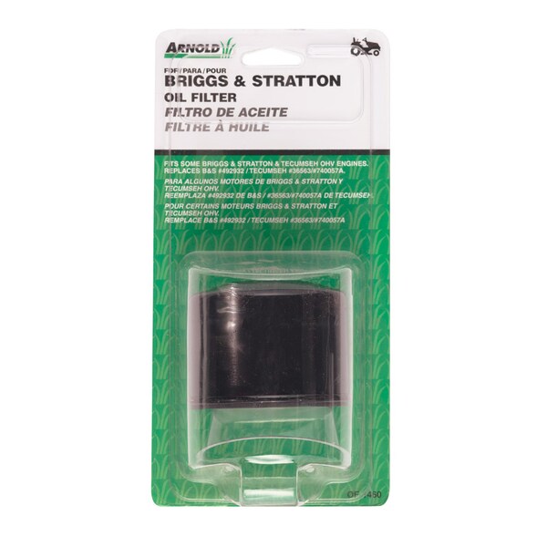 This Arnold OF-1460 Briggs and Stratton/Tecumseh Lawn Mower Oil Filter fits some Briggs and Stratton and Tecumseh OHV engines. This mower oil filter replaces Briggs and Stratton OE part number 492932 and Tecumseh OE part number 6563/number 740057A. This lawn mower oil filter fits some Briggs and Stratton and Tecumseh OHV engines. An engine oil filter is necessary for keeping dirt and debris out of your engine.