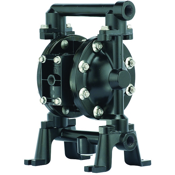 Double Diaphragm Pump, Air Consumption (Maximum) 20 scfm, Air Intake Connection Size 1/4 in, Air Intake Connection Type NPT, Check Seat Material Polypropylene, Diaphragm Material Buna-N, Feet of Head (Maximum) 255 ft, Flow Rate (Maximum) 12.4 gpm, Manifold Connection Single Port, Media Discharge Connection Size 1/2 in, Media Discharge Connection Type NPTF, Media Discharge Location Center, Side, Media Intake Connection Size 1/2 in, Media Intake Connection Type NPTF