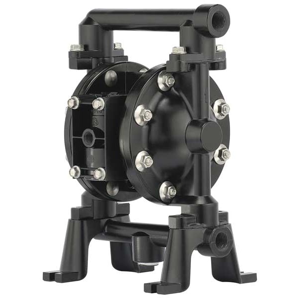 Double Diaphragm Pump, Air Consumption (Maximum) 20 scfm, Air Intake Connection Size 1/4 in, Air Intake Connection Type NPT, Check Seat Material Polypropylene, Diaphragm Material Santoprene, Feet of Head (Maximum) 255 ft, Flow Rate (Maximum) 12.4 gpm, Manifold Connection Single Port, Media Discharge Connection Size 1/2 in, Media Discharge Connection Type NPTF, Media Discharge Location Center, Side, Media Intake Connection Size 1/2 in, Media Intake Connection Type NPTF