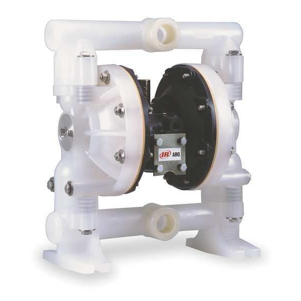 Double Diaphragm Pump, Air Consumption (Maximum) 45 scfm, Air Intake Connection Size 1/4 in, Air Intake Connection Type NPT, Check Seat Material Polypropylene, Diaphragm Material PTFE, Feet of Head (Maximum) 289 ft, Flow Rate (Maximum) 48 gpm, Manifold Connection Single Port, Media Discharge Connection Size 1 in, Media Discharge Connection Type NPTF, Media Discharge Location Center, Media Intake Connection Size 1 in, Media Intake Connection Type NPTF, Media Intake Location Center