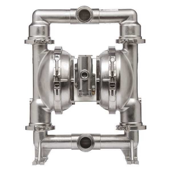 Double Diaphragm Pump, Air Intake Connection Size 2 in, Air Intake Connection Type Tri-Clamp, Check Seat Material 316 Stainless Steel, Diaphragm Material Santoprene, Flow Rate (Maximum) 54 gpm, Manifold Connection Flanged, Media Discharge Connection Size 2 in, Media Discharge Connection Type Tri-Clamp, Media Intake Connection Size 2 in, Media Intake Connection Type FNPT, Media Temperature (Maximum) 225 Degrees F, Operating Pressure (Maximum) 120 psi, Solid Diameter (Maximum) 0.12 in