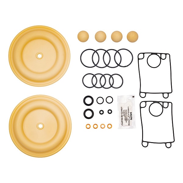 Fluid End Service Kit, Check Ball Material Santoprene, Compatible with Grainger Part Number 49AV29, 49AV31, Compatible with Manufacturer Model Number SD10R-CSS-SMM-A, SD10S-CSS-SMM-A, Diaphragm Material Santoprene, Number of Check Balls 4, Number of Diaphragms 2, Number of O-Rings 12, Number of Seals 12, Valve Type Ball, Product Type Fluid End Repair Kit, Media Intake Pressure (Maximum) 120 psi, Compatible with Pump Type Air Operated Double Diaphragm Pump
