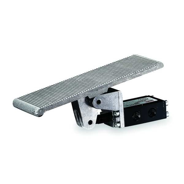 Manual Air Control Valve, Valve Ways and Positions 3-Way/2-Position, Valve Port Size 1/4 in, Connection NPT, Valve Actuator / Return Treadle / Manual, Max. CFM - Valves 26 cfm, Valve Max. Pressure Rating 150 psi, Valve Temp. Range -10 Degrees to 180 Degrees F, Center Position Not Applicable, Normally Open / Normally Closed Normally Closed, Coefficient of Volume 0.7, Body Material Aluminum, Overall Length 8 3/8 in, Overall Height 4 5/8 in, Overall Width 2 3/4 in, Series E