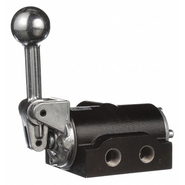 Manual Air Control Valve, Valve Ways and Positions 4-Way/3-Position, Valve Port Size 3/8 in, Connection NPT, Valve Actuator / Return Lever / Spring, Max. CFM - Valves 83 cfm, Valve Max. Pressure Rating 150 psi, Valve Temp. Range -10 Degrees to 180 Degrees F, Center Position Closed, Coefficient of Volume 2.3, Body Material Aluminum, Overall Length 6 7/16 in, Overall Height 6 7/8 in, Overall Width 3 1/2 in, Series K, Manual Air Control Valve