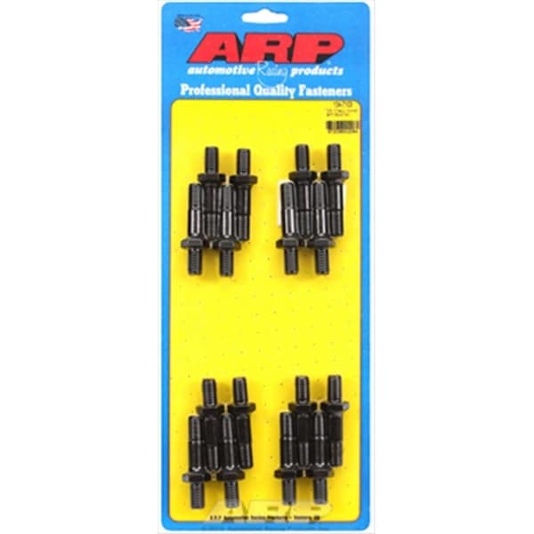 ARP High Performance series rocker arm studs are ideal for ET bracket racing, limited rule oval track competition, and street use. They are heat-treated to 180,000 psi tensile strength. These studs are concentric within 0.005 T.I.R. thread pitch to thread pitch, which will give you more consistent rocker geometry. With an extra-large radius base, these studs are more resistant to flex and will provide a more positive seating. These rocker arm studs are designed to be used with Perma-Loc adjusters not for use with OEM-style, self-locking nuts. Features 16 Pack.