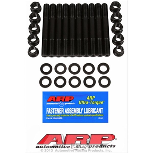 This ARP main studs are made from 8740 chromoly steel and have a 190,000 psi tensile-strength rating. They are precision centerless-ground and thread-rolled to Mil-S-8879 specs, with a black oxide finish for corrosion resistance. The kits come complete with hardened washers and high-strength hex nuts. Features Main Bolt Style - 2-bolt. Fastener Style - Stud. Fastener Nut Style - Standard hex. Fastener Yield Strength psi - 200,000 psi. Nuts & Washers Included. Application Make - Dodge, Chrysler, Plymouth. Year - 1958-2003. Engine Type - V8. Engine Size - 6.8L/413. Engine Family - Mopar big block RB.