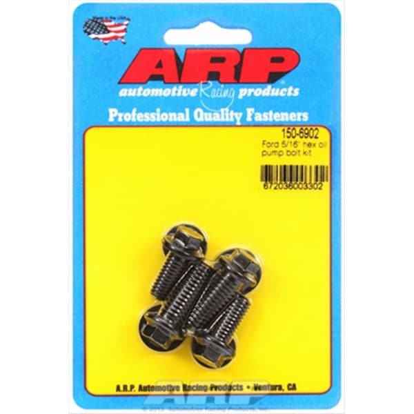 The best way to ensure that your oil pump will stay in place is to use one of these oil pump bolt kits from ARP. They come in your choice of black oxide finished 8740 chromoly steel or stainless steel, and are rated at 170,000 psi tensile strength. Features Fastener Style - Bolt. Fastener Material - Chromoly. Fastener Finish - Black oxide. Fastener Head Style - Hex. Application Make - Ford. Year - 1957-1997. Engine Type - V8.