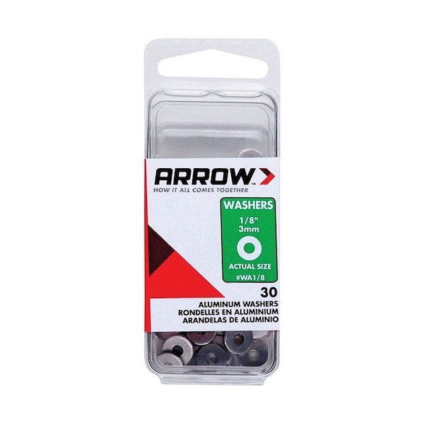 1/8 in. D Aluminum Flat Washers Silver, 30PK
