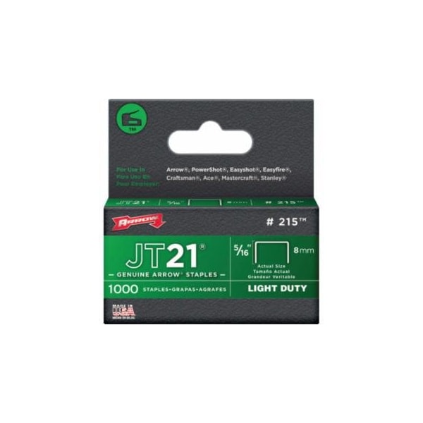 JT21 Type Staples, 5/16 in, Steel, 1,000 PK