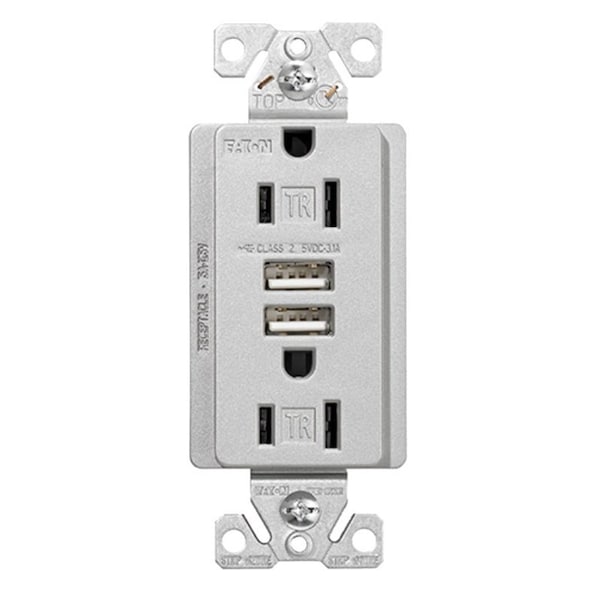 TR7755SGKL Combination USB Receptacle, 2 Pole, 31 A USB, 15 A Receptacle, 2 USB Port