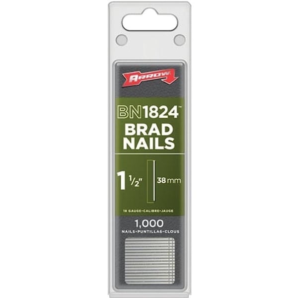 Arrow brad nails are small 18 ga nails up to 2 in long. Because they are thinner in cross section, they are less likely to split decorative molding as they leave a very small hole.
