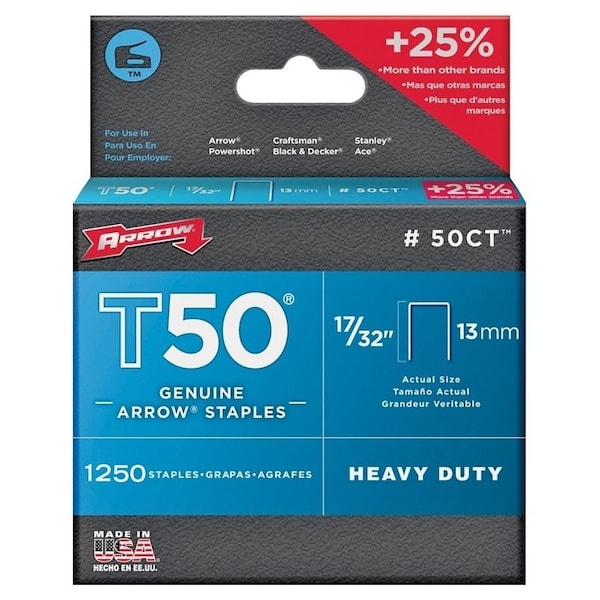 T50 Series Staple, 3/8 in W Crown, 17/32 in L Leg, 4PK