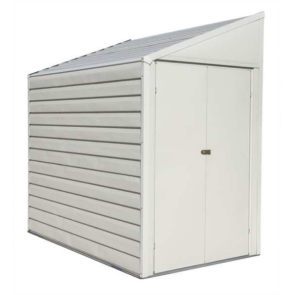 Storage Shed, Beige, Door Opening Height 60 in, Door Opening Width 39 in, Nominal Exterior Depth 80 in, Nominal Exterior Width 49 in, Nominal Exterior Height 82 in, Wall Material Steel, Roof Material Steel, Storage Capacity 154 cu ft, Includes Lock Yes, Assembled Unassembled, Interior Depth 77 1/2 in, Fire Rating Not Rated, Lockable Yes, Interior Height 81 1/4 in, Interior Width 47 3/4 in, Includes Floor No, Hinged, Number of Doors 1, Number of Shelves 3, Roof Design Slope