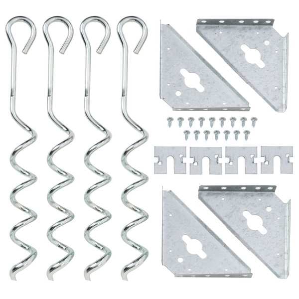 Earth Anchor Kit, Overall Depth 1 1/2 in, Overall Height 15 in, Overall Width 1 1/2 in, Steel, Compatible Brand and Series ARROW, Finish Hot Dipped Galvanized, Corner Bracket, Screw Augers, Adjustable Not Adjustable, Gray, Compatible Manufacturer Model Number Shed, Function Anchoring Building