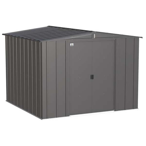 Steel Storage Shed, Gray, Door Opening Height 63 in, Door Opening Width 44 in, Nominal Exterior Depth 95 in, Nominal Exterior Width 100 in, Nominal Exterior Height 73 in, Wall Material Steel, Roof Material Steel, Storage Capacity 338 cu ft, Includes Lock Yes, Assembled Unassembled, Interior Depth 90 in, Fire Rating Not Rated, Lockable Yes, Interior Height 71 5/8 in, Interior Width 94 3/4 in, Includes Floor No, Sliding, Number of Doors 1, Roof Design Slope, Wall Thickness 1/32 in