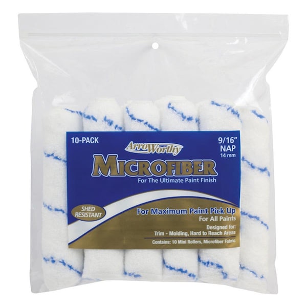 Microfiber 0.56 x 6.5 in. Paint Roller Cover, White, 10PK
