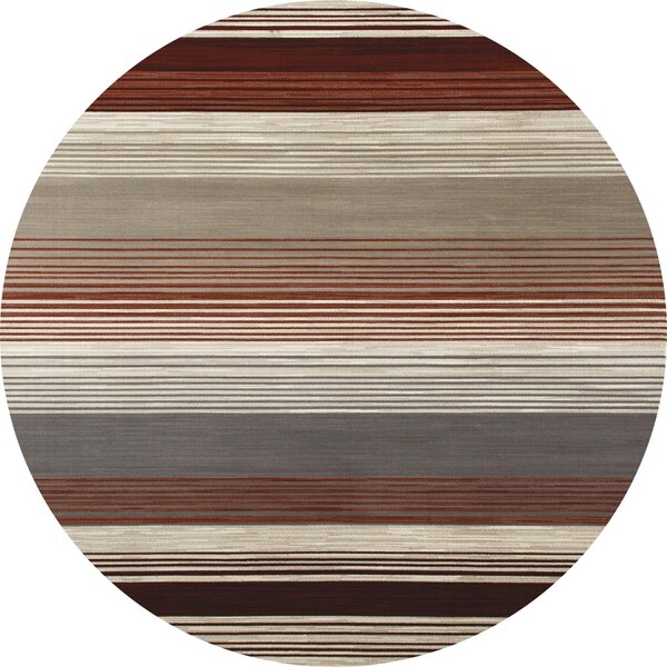 8 Ft. Bastille Collection Heathered Stripe Border Woven Round Area Rug, Red (Discontinued)