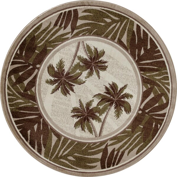 8 Ft. Palm Coast Collection Frond Woven Round Area Rug, Beige (Discontinued)