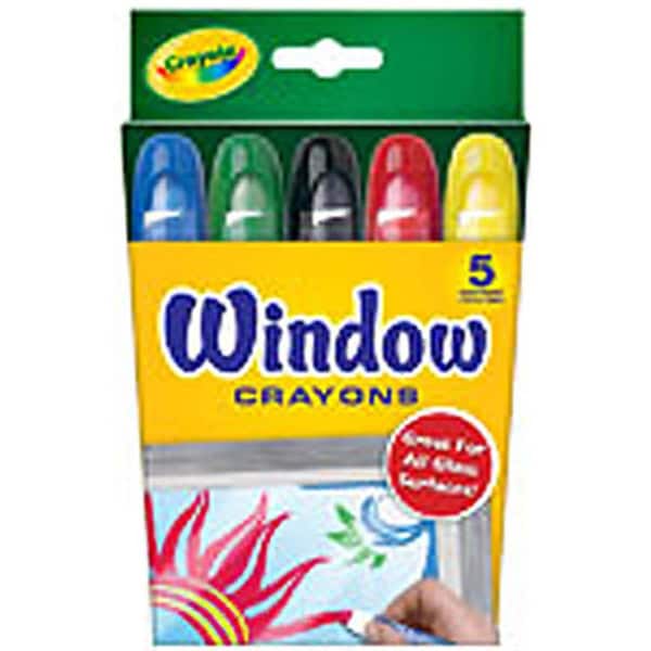 Features -Cast a colorful reflection! Holidays special occasions school events or anytime you feel creative!. -Crayola Window Crayons turn your windows into instant decorations. -These bright bold colors go on smoothly and dry quickly without smudging. -And Window Crayons easily wash off all glass surfaces. -Great for car windows mirrors and other glass surfaces too!. -Pack includes 5 washable Window Crayons.
